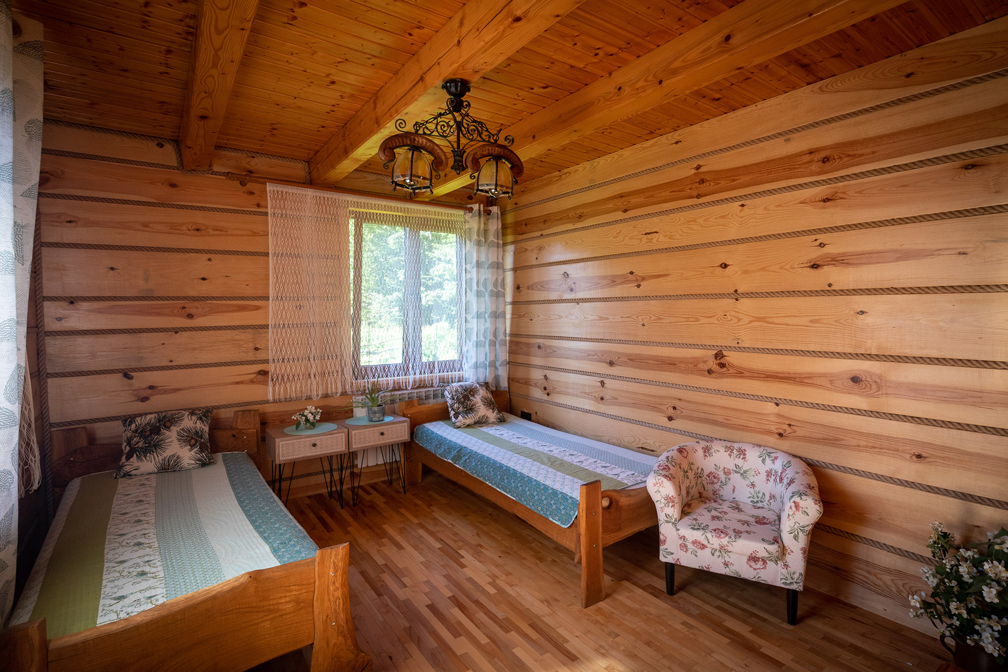Mieszkanie jaśminowe do dwa doskonale wyposażone pokoje o łącznej powierzchni 45 m2. Goście znajdą tutaj telewizor, Wi-Fi ,wygodne łóżka., miękkie ręczniki i szlafroki. W pierwszym pokoju znajduje się 2-osobowe łoże małżeńskie (160×200 cm), pozwalające na komfortowy wypoczynek po dniu pełnym przygód. W drugim pokoju znajdują się dwa pojedyncze łóżka (90×200 cm). Istnieje możliwość dostawki.
